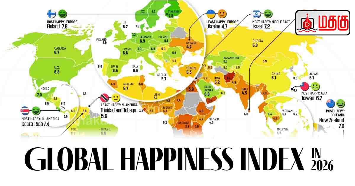 ஐக்கிய நாடுகள் சபையின் ஆதரவுடன் இன்று (19.03.2026) வெளியிடப்பட்டுள்ள 2026 ஆம் ஆண்டிற்கான உலக மகிழ்ச்சி அறிக்கையில், இலங்கை உலகளவில் குறைந்தளவான மகிழ்ச்சியுடைய நாடாக 134 ஆவது