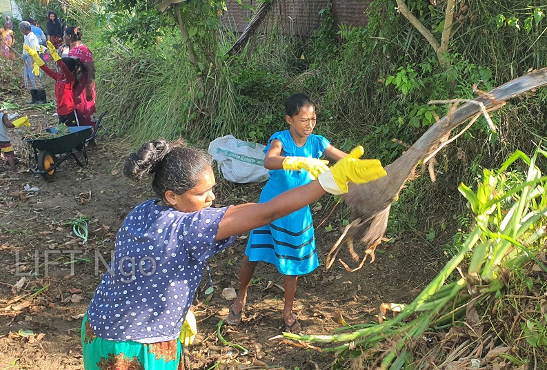 USAID மற்றும் Global Communities நிறுவனங்களின் அனுசரணையுடன் LIFT தன்னார்வ தொண்டு நிறுவனத்தினால் இப்பிரதேசத்தில் முன்னெடுக்கப்படும் வேலைத்திட்டத்தின் ஒரு பகுதியாக இந்த பாரிய சிரமதானப்பணி முன்னெடுக்கப்பட்டது.