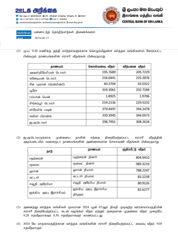இலங்கை மத்திய வங்கியினால் வெளியிடப்பட்டுள்ள இன்றைய நாணய மாற்று விகிதங்கள் வருமாறு,