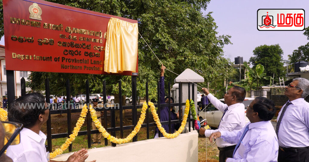 பிரமாண அடிப்படையிலான கொடையின் கீழ் 85 மில்லியன் ரூபா செலவில் , வடக்கு மாகாண காணி ஆணையாளர் அலுவலகம் கிளிநொச்சி நகரில் புதிதாக அமைக்கப்பட்டு வடக்கு மாகாண ஆளுநரால் 03.01.2025 அன்று திறந்து வைக்கப்பட்டது.