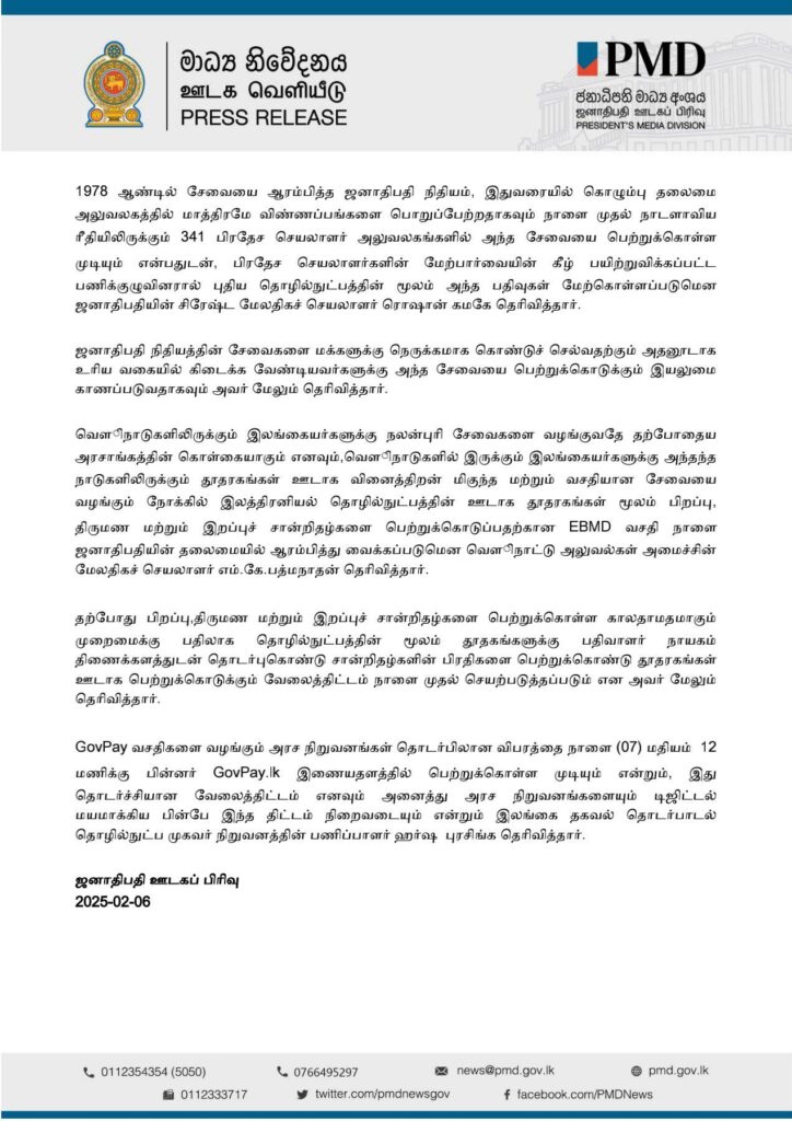 இது அரச வருமான சேகரிப்பில் வெளிப்படைத்தன்மை மற்றும் பாதுகாப்பை மேம்படுத்துகிறது. தரவு சார்ந்த முடிவெடுப்பதை ஊக்குவிப்பதோடு, மிகவும் திறமையான மற்றும் குடிமக்களுக்கு ஏற்ற அரச சேவை வழங்கலுக்கு வழிவகுக்கும் என ஜனாதிபதி ஊடகப்பிரிவு தெரவித்துள்ளது.