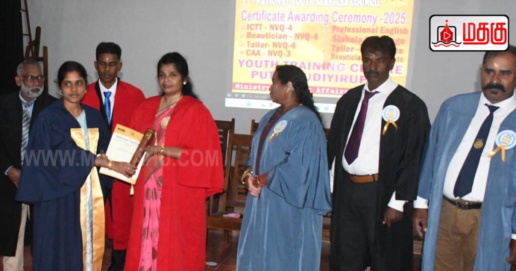 புதுக்குடியிருப்பு தேசிய இளைஞர் சேவைகள் மன்றத்தில் ஆங்கிலம் மற்றும் சிங்கள மொழிக்கற்கைகளையும், தகவல் தொழில்நுட்பம், தையல், அழகுக்கலை போன்ற ஆறு மாத தொழிற்பயிற்சி கற்கை நெறிகளை பூர்த்தி செய்த மாணவர்களுக்கு இதன் போது சான்றிதழ்கள் வழங்கி வைக்கப்பட்டன.