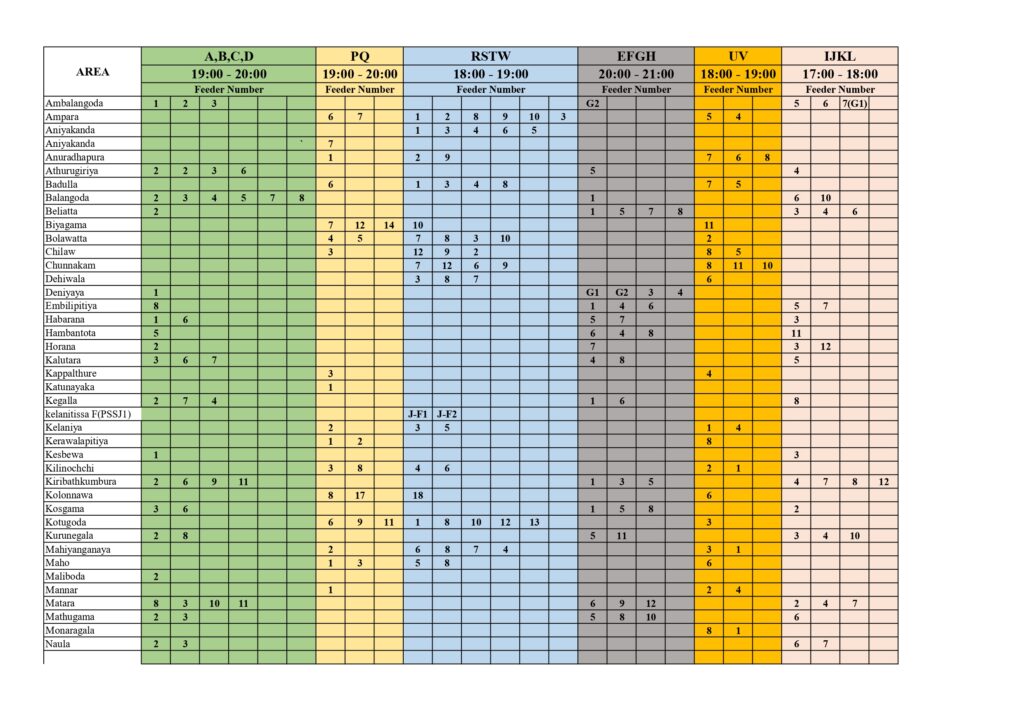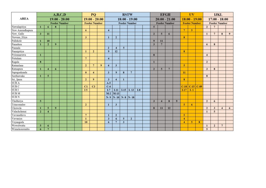 மின் விநியோகத் துண்டிப்பு அமுல்படுத்தப்படும் பகுதிகள் மற்றும் நேர அட்டவணையை இலங்கை மின்சார சபை அறிவித்துள்ளது.