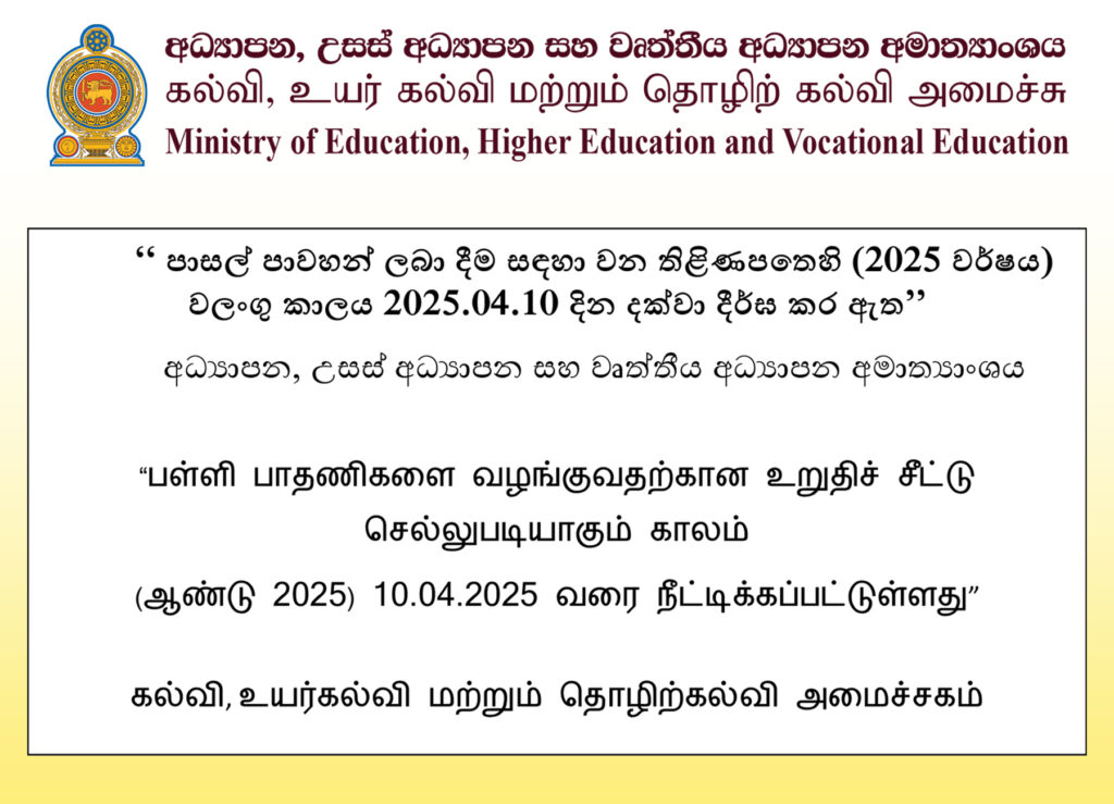 அதன் அடிப்படையில், 2025 ஆம் ஆண்டுக்கான குறித்த உறுதிச் சீட்டு செல்லுபடியாகும் காலம் 10.04.2025 வரை நீட்டிக்கப்பட்டுள்ளதாக தெரிவித்துள்ளது.