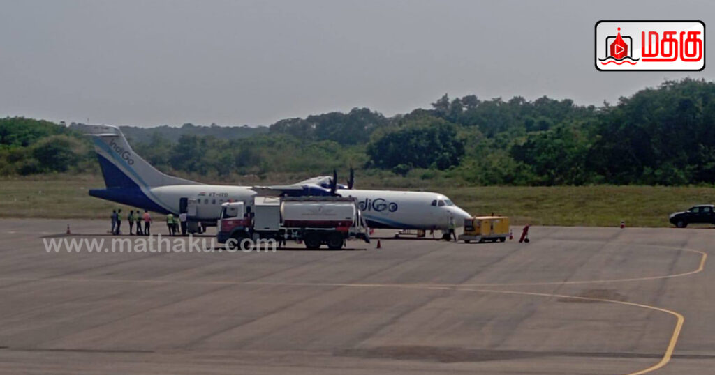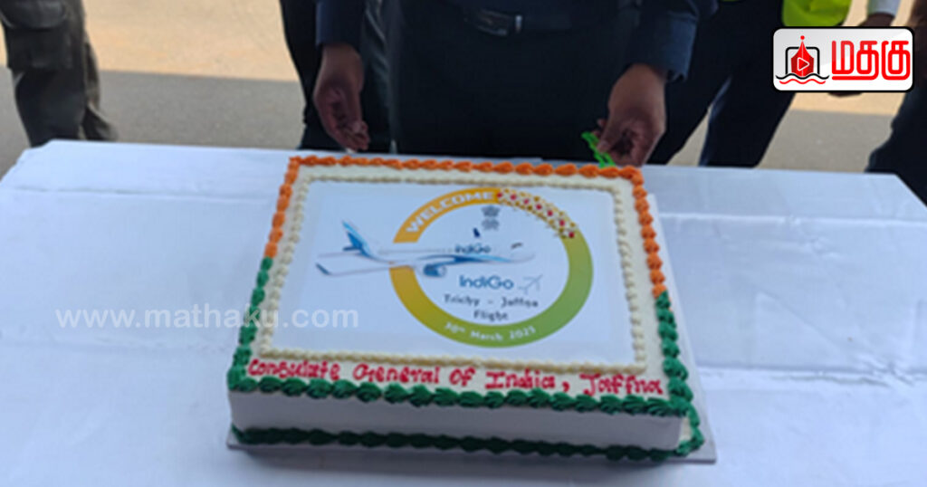 அதன் அடிப்படையில், திருச்சியில் இருந்து மதியம் புறப்பட்ட விமானம், யாழ்ப்பாண சர்வதேச விமான நிலையத்தை சென்றடைந்த வேளை, விமான நிலையத்தில் வரவேற்பளிக்கப்பட்டது.
