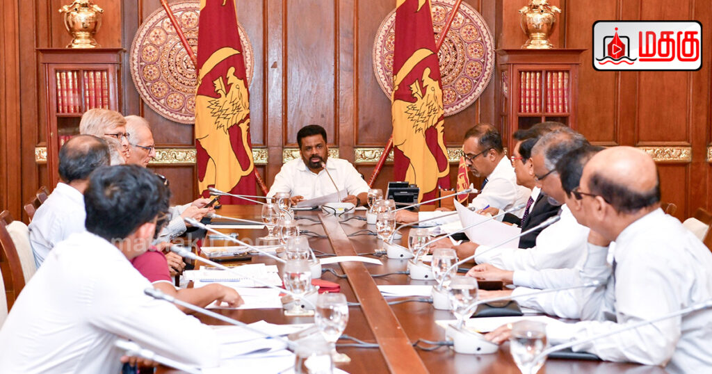 அமெரிக்காவின் புதிய வரி விதிப்பு குறித்து அரசாங்கத்திற்கு பரிந்துரைகளை வழங்குவதற்காக நியமிக்கப்பட்ட குழு மற்றும் ஜனாதிபதி அநுர குமார திசாநாயக்கவுக்கு இடையிலான சந்திப்பொன்று 02.04.2025 அன்று ஜனாதிபதி அலுவலகத்தில் நடைபெற்றது.
