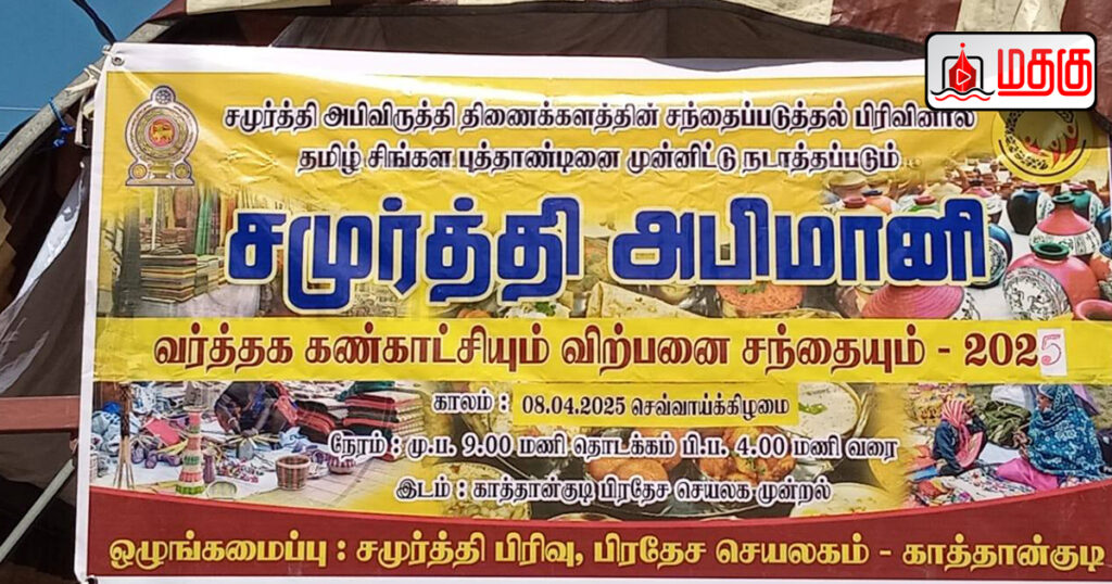 காத்தான்குடி பிரதேச செயலகத்தின் சமுர்த்தி அபிவிருத்தி பிரிவு மற்றும் சிறு தொழில் முயற்சி அபிவிருத்தி பிரிவும் இணைந்து நடாத்திய சிறு சந்தை (SED Mini Fair) மற்றும் சமுர்த்தி அபிமானி வர்த்தக கண்காட்சியும் விற்பனைச் சந்தையும் 08.04.2025 அன்று பிரதேச செயலாளர் நிஹாரா மௌஜுத் தலைமையில் பிரதேச செயலகம் முன்றலில் இடம்பெற்றது.