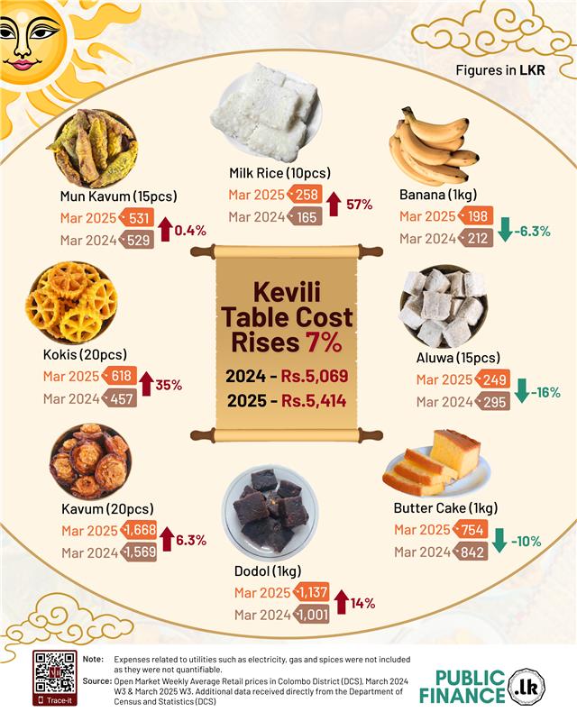 2024 ஆம் ஆண்டு மார்ச் மாதத்திற்க்கும் 2025ஆம் ஆண்டு மார்ச் மாதத்திற்க்கும் இடையில், பலகாரம் மற்றும் இனிப்புத் தின்பண்டங்களுக்கான மூலப்பொருட்களின் விலையில் 7 சதவீதமான அதிகரித்திருப்பதாக பகுப்பாய்வில் கண்டறியப்பட்டுள்ளது.