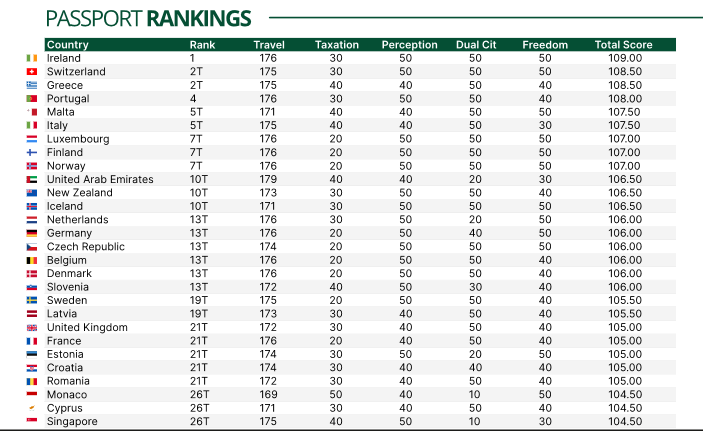 Nomad Capitalist அறிக்கையின்படி, இந்த ஆண்டு உலகிலேயே மிகவும் வரவேற்கத்தக்க கடவுச்சீட்டை கொண்ட நாடு அயர்லாந்து ஆகும்.