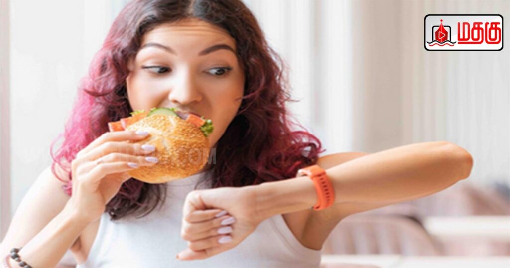 - ஒரு வாய் உணவை முழுதாக மென்று விழுங்கிய பிறகே, அடுத்த வாய் உணவை உண்ண வேண்டும்.