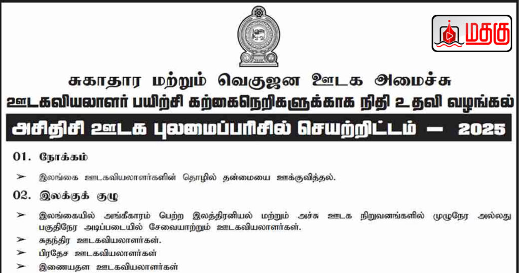 இலங்கை ஊடகவியலாளர்களின் தொழில் திறனை மேம்படுத்தும் நோக்கில் ஆண்டுதோறும் செயல்படுத்தப்படும் ‘அசிதிசி ஊடக புலமைப்பரிசில் திட்டம்’, இந்த ஆண்டு சுகாதார மற்றும் வெகுஜன ஊடக அமைச்சினால் ஆரம்பிக்கப்பட்டுள்ளது.