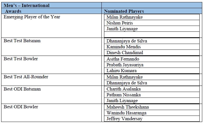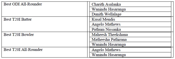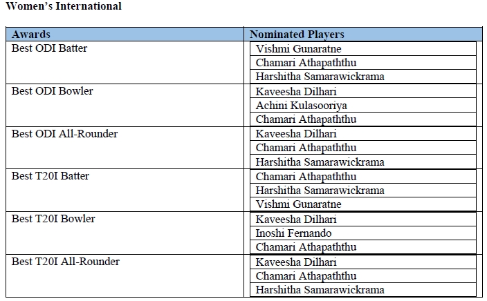அதன்படி, 2024 ஆம் ஆண்டின் ஆண்கள் கிரிக்கெட் வீரர் விருதை கமிந்து மெந்திஸ் வென்றார். 2024 ஆம் ஆண்டின் மகளிர் கிரிக்கெட் வீராங்கனை விருதை சமரி அத்தபத்து வென்றார்.