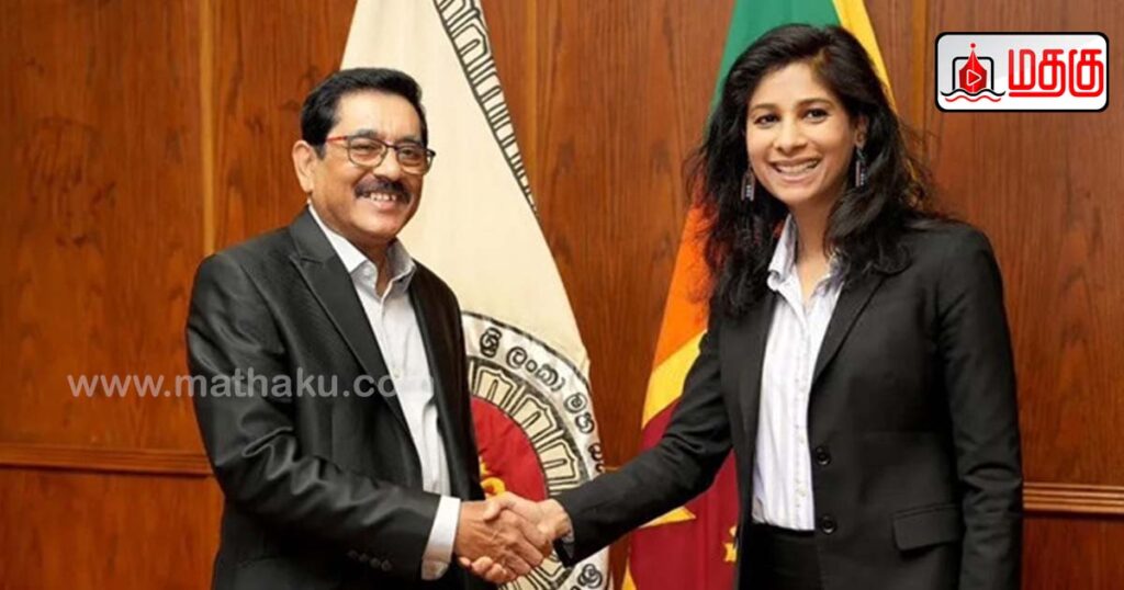 இலங்கைக்கு வருகை தந்துள்ள சர்வதேச நாணய நிதியத்தின் முதன்மைப் பிரதி முகாமைத்துவ பணிப்பாளர் கீதா கோபிநாத் இலங்கை மத்திய வங்கியின் ஆளுநர் நந்தலால் வீரசிங்கவை சந்தித்துக் கலந்துரையாடியுள்ளார்.