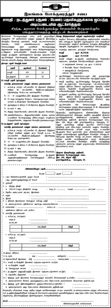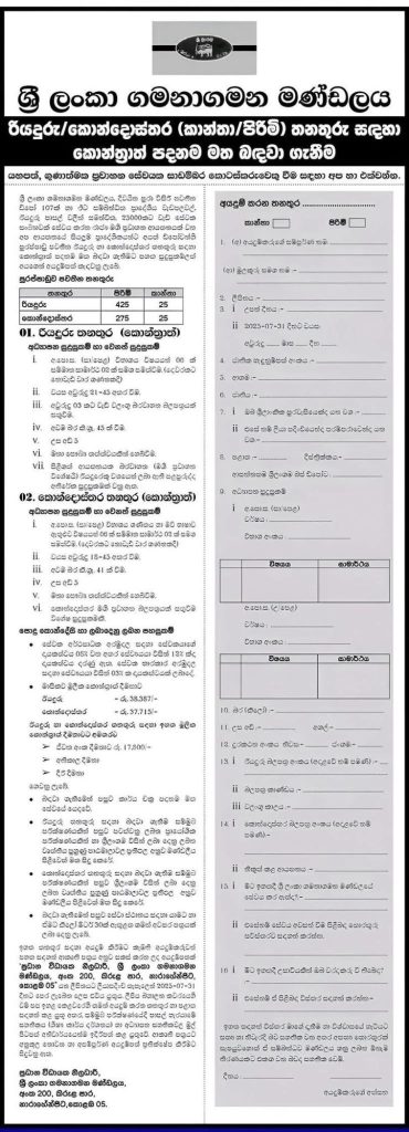 இலங்கை போக்குவரத்து சபை (SLTB) ஒப்பந்த அடிப்படையில் சாரதிகள் மற்றும் நடத்துனர்களை ஆட்சேர்ப்பு செய்வதற்காக நாடு முழுவதும் தகுதியான நபர்களிடமிருந்து விண்ணப்பங்களை கோரியுள்ளது.