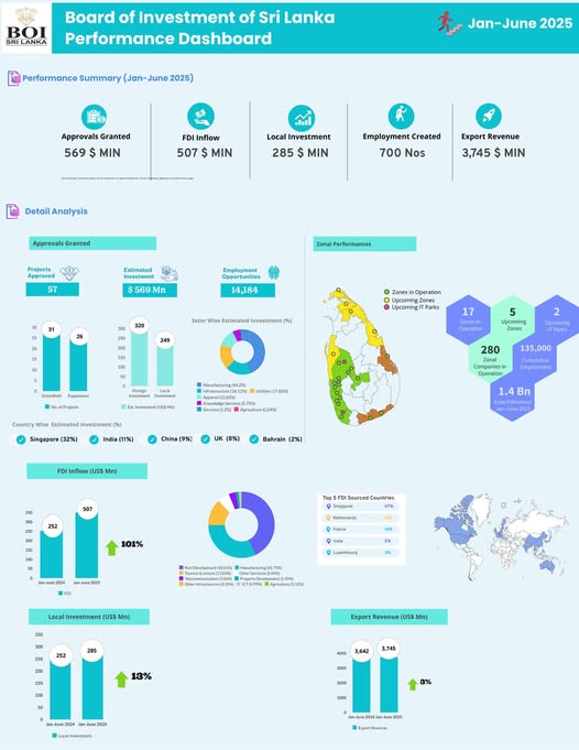 2025 ஆம் ஆண்டு 57 திட்டங்களுக்கு இலங்கை முதலீட்டு சபை ஒப்புதல் அளித்துள்ளதாக கைத்தொழில் மற்றும் வணிக அபிவிருத்தி பிரதி அமைச்சர் சத்துரங்க அபேசிங்க தெரிவித்தார்.