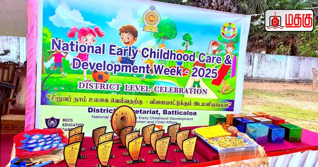 மட்டக்களப்பில் தேசிய முன்பிள்ளைப் பருவ பராமரிப்பு மற்றும் அபிவிருத்தி வார நிகழ்வானது மட்டக்களப்பு மாவட்ட அரசாங்க அதிபர் ஜஸ்டினா முரளிதரன் தலைமையில் உதவி மாவட்ட செயலாளர் ஜீ.பிரணவனின் வழிகாட்டுதலின் கீழ் மாவட்ட முன்பிள்ளைப் பருவ அபிவிருத்தி இணைப்பாளர் வீ.முரளிதரனின் ஏற்பாட்டில் லைட் ஹவுஸ் விளையாட்டு மைதானத்தில் 09.08.2025 அன்று இடம் பெற்றன.