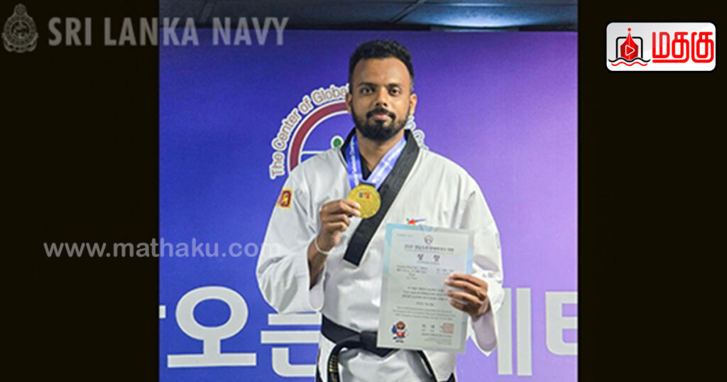 கொரியா குடியரசின் சியோங்னம் (Seongnam) மற்றும் கயர்யோன்ங் (Gyeryong) வில் நடைபெற்ற திறந்த டய்கோண்டோ சாம்பியன்ஷிப் போட்டிகளில் இலங்கையைப் பிரதிநிதித்துவப்படுத்திய கடற்படையின் லெப்டினன்ட் ஆராச்சிகே நிசங்க, 20.07.20025 அன்று மற்றும் 10.08.2025 ஆகிய திகதிகளில் தாய்நாட்டிற்காக இரண்டு (02) தங்கப் பதக்கங்களை வென்றார்.
