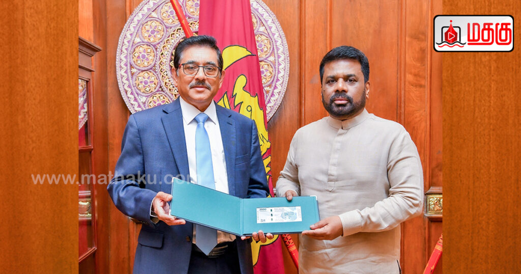 இலங்கை மத்திய வங்கியின் 75 ஆவது ஆண்டு நிறைவைக் குறிக்கும் வகையில் வெளியிடப்பட்ட 2000 ரூபாய் புதிய நினைவு நாணயத் தாள், மத்திய வங்கியின் ஆளுநர் கலாநிதி நந்தலால் வீரசிங்கவினால் 29.08.2025 அன்று ஜனாதிபதி அலுவலகத்தில் ஜனாதிபதி அநுரகுமார திசாநாயக்கவிடம் கையளிக்கப்பட்டது.