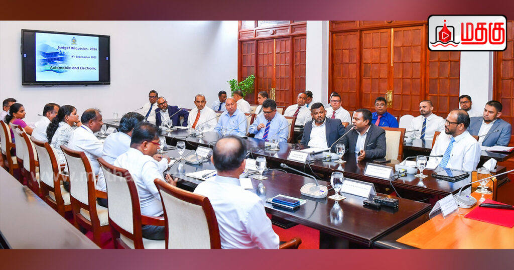 ஒட்டோமொபைல் மற்றும் இலத்திரனியல் உபகரணக் கைத்தொழில்கள் தொடர்பான வரவு செலவுத் திட்ட பூர்வாங்கக் கலந்துரையாடல் 16.09.2025 antru ஜனாதிபதி அலுவலகத்தில் நடைபெற்றது.