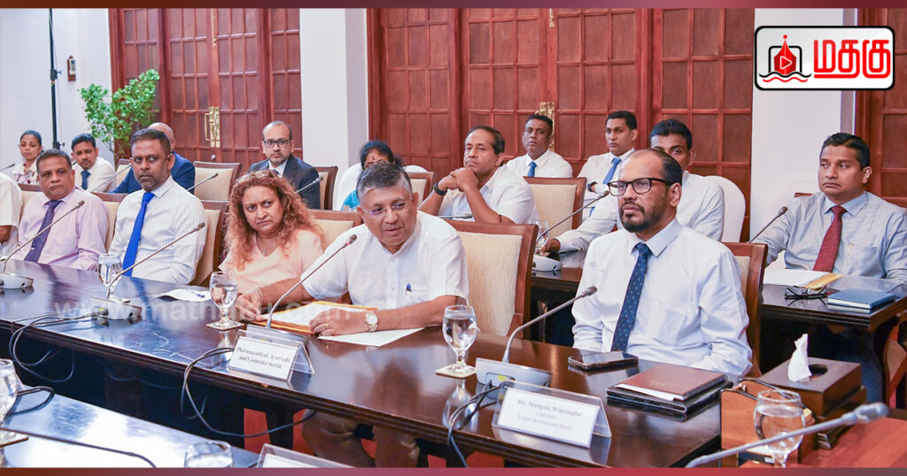மருந்து, கால்நடை மருந்து, ஆயுர்வேத மற்றும் அழகுசாதனப் பொருட்கள் உற்பத்தித் துறையில் நிலவும் பிரச்சினைகள் குறித்து விரிவாக ஆராயப்பட்டதோடு எதிர்வரும் வரவு செலவுத் திட்டத்திற்கென பல பயனுள்ள பரிந்துரைகளை அவர்கள் முன்வைத்தனர்.