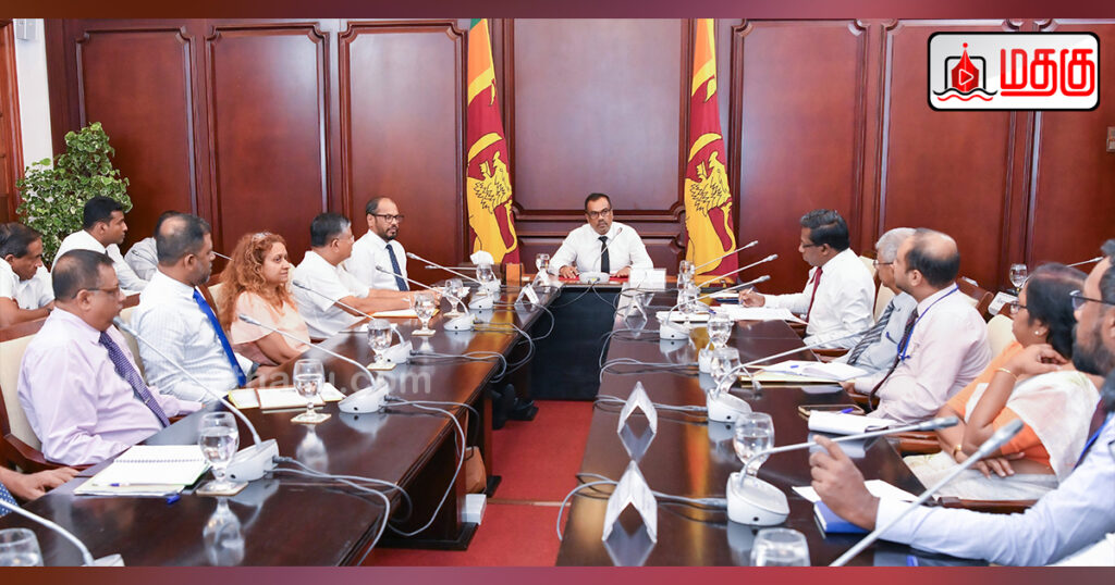 மருந்து, கால்நடை மருந்து, ஆயுர்வேத மற்றும் அழகுசாதனப் பொருட்கள் உற்பத்தித் துறை தொடர்பான வரவு செலவுத்திட்ட பூர்வாங்கக் கலந்துரையாடல் 18.09.2025 அன்று ஜனாதிபதி அலுவலகத்தில் தொழில் அமைச்சரும் பொருளாதார அபிவிருத்திப் பிரதி அமைச்சருமான கலாநிதி அனில் ஜயந்த பெர்னாண்டோ தலைமையில் நடைபெற்றது.