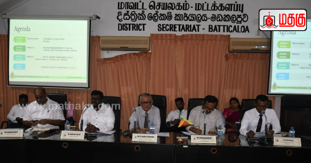 மட்டக்களப்பு மாவட்டத்திற்கான ஒருங்கிணைப்புக் குழுக் கூட்டம், தொழில் முயற்சியான்மை அபிவிருத்தி அமைச்சரும் பாரளுமன்ற உறுப்பினருமாகிய சுனில் ஹந்துன்னெத்தி தலைமையில் மட்டக்களப்பு மாவட்ட அரசாங்க அதிபர் ஜே.எஸ்.அருள்ராஜின் ஏற்பாட்டில் பழைய மாவட்ட செயலக மாநாட்டு மண்டபத்தில் 30.09.2025 அன்று நடைபெற்றது.