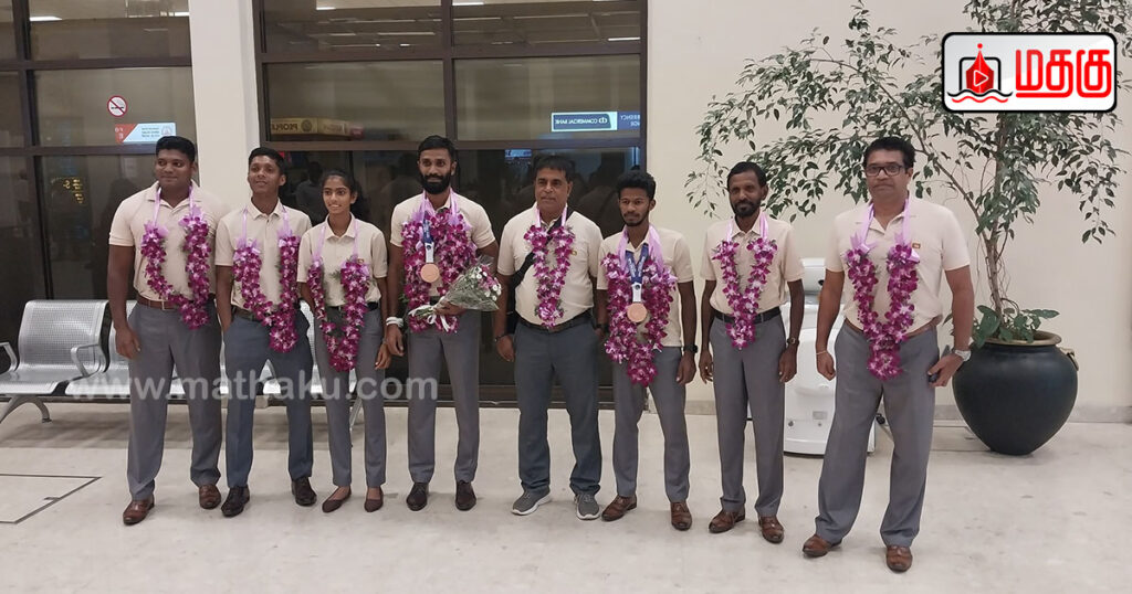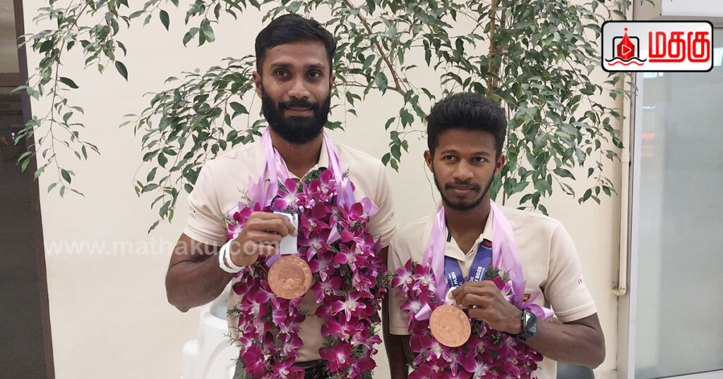 இந்தியாவில் நடைபெற்ற உலக பரா மெய்வல்லுனர் சம்பியன்ஷிப் போட்டியில் இலங்கையைப் பிரதிநிதித்துவப்படுத்திய 2 தடகள வீரர்களான நுவான் இந்திக மற்றும் பிரதீப் சோமசிறி 02 வெண்கலப் பதக்கங்களை வென்று இன்று (07.10.2025) அதிகாலையில் கட்டுநாயக்க விமான நிலையத்தை வந்தடைந்தனர்.