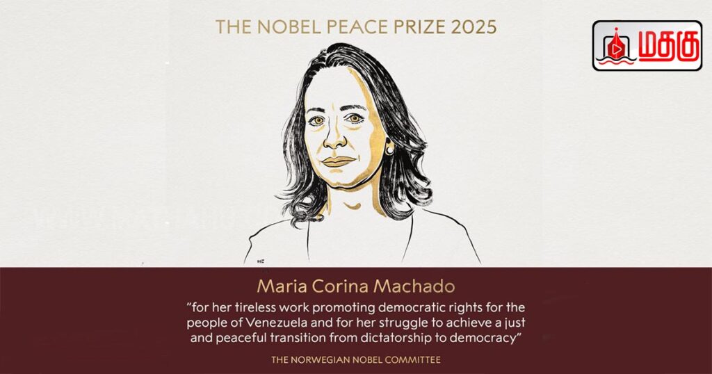 வெனிசுலா மக்களின் ஜனநாயக உரிமைகளை மேம்படுத்துவதற்காகவும், சர்வாதிகாரத்திலிருந்து ஜனநாயகத்திற்கு நியாயமான மற்றும் அமைதியான மாற்றத்தை அடைவதற்கான அவரது போராட்டத்திற்காகவும் மரியா கொரினா மச்சாடோவுக்கு 2025 ஆம் ஆண்டுக்கான நோபல்அமைதிப் பரிசை வழங்க நார்வே நோபல் குழு முடிவு செய்துள்ளதாக அறிவிக்கப்பட்டுள்ளது.