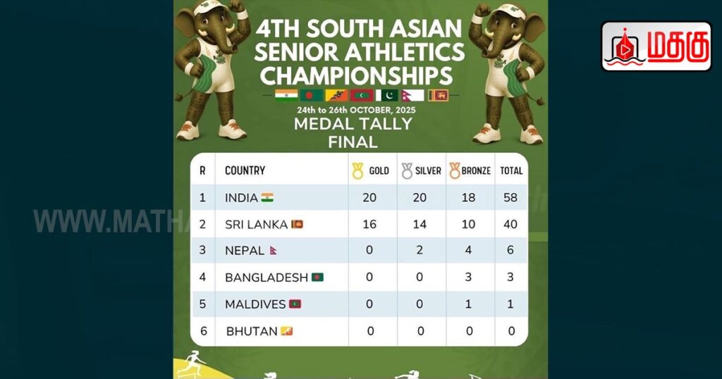 இந்தியாவின் ராஞ்சியில் 26.10.2025 அன்று முடிவடைந்த தெற்காசிய சிரேஸ்ட தடகள செம்பியன்ஷிப் போட்டியில் இலங்கை இரண்டாம் இடத்தைப் பிடித்துள்ளது.