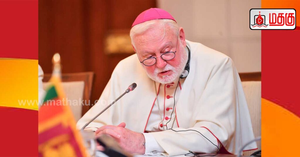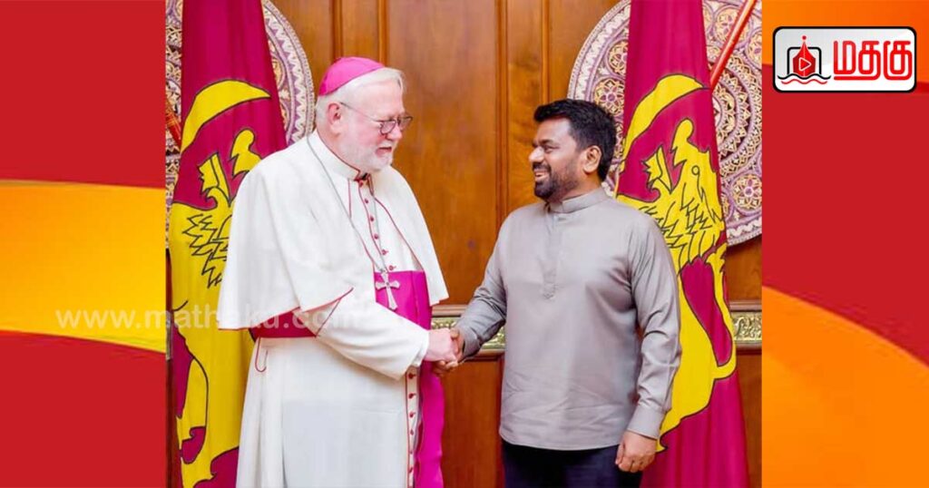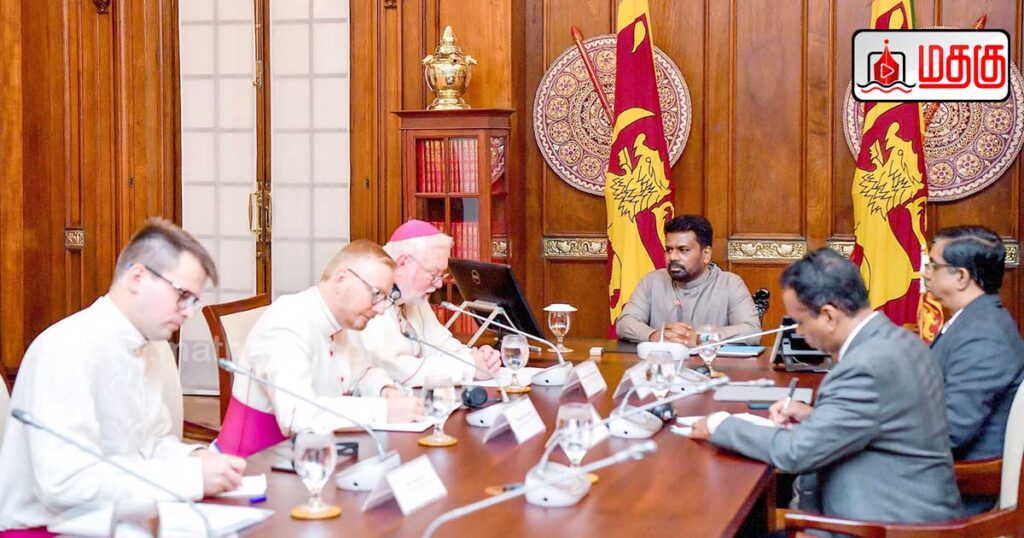 உத்தியோகபூர்வ விஜயம் மேற்கொண்டு இலங்கைக்கு வருகை தந்துள்ள வத்திக்கானின் நாடுகள் மற்றும் சர்வதேச அமைப்புகளுடனான உறவுகளுக்கான செயலாளர் பேராயர் போல் ரிச்சர்ட் கல்லாகர் , 04.11.2025 அன்று ஜனாதிபதி அலுவலகத்தில் ஜனாதிபதி அநுரகுமார திசாநாயக்கவை சந்தித்தபோது இவ்வாறு தெரிவித்தார்.