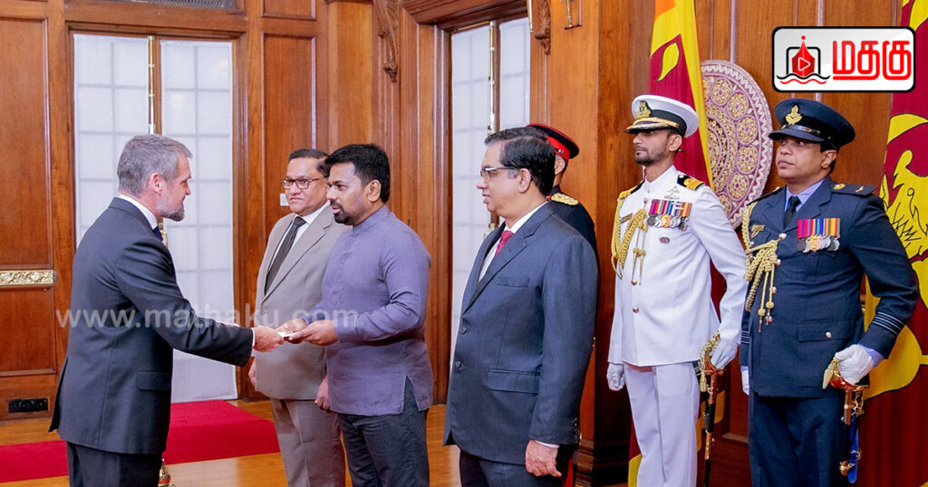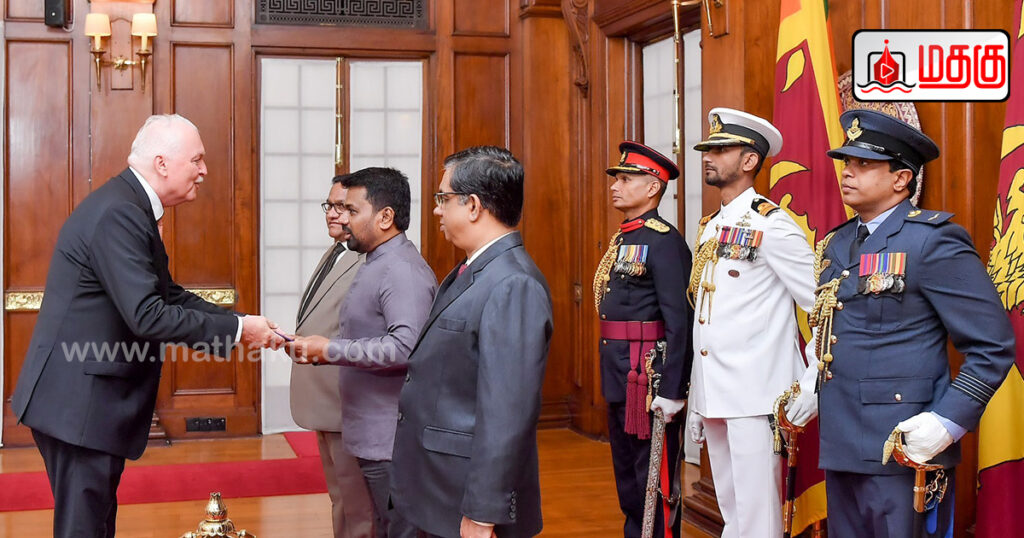 இலங்கைக்கு புதிதாக நியமிக்கப்பட்டுள்ள மூன்று தூதுவர்கள் மற்றும் இரண்டு உயர் ஸ்தானிகர்கள் இன்று (13.11.2025) ஜனாதிபதி அலுவலகத்தில் ஜனாதிபதி அனுர குமார திசாநாயக்கவிடம் நற்சான்றுப் பத்திரங்களை கையளித்தனர்.