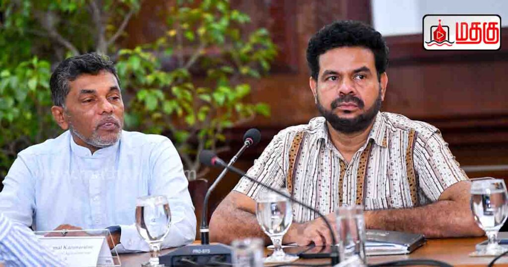 நெல் விவசாயிகளின் பிரச்சினைகளுக்கு தீர்வு காண முறையான வேலைத்திட்டத்தை தயாரிப்பது தொடர்பாக குறித்த விவசாயிகளுடனான கலந்துரையாடல் இன்று (25.11.2025) ஜனாதிபதி அலுவலகத்தில் கமத்தொழில், கால்நடை வளங்கள், காணி மற்றும் நீர்ப்பாசன அமைச்சர் கே.டி. லால்காந்த மற்றும் வர்த்தக, வாணிப, உணவுப் பாதுகாப்பு மற்றும் கூட்டுறவு அபிவிருத்தி அமைச்சர் வசந்த சமரசிங்க ஆகியோரின் தலைமையில் நடைபெற்றது.