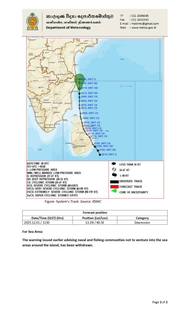 நாட்டைச் சூழவுள்ள கடற்பரப்புகளில் மீன்பிடி மற்றும் கடற்சார் நடவடிக்கைகளில் ஈடுபடுவதைத் தடுக்கும் வகையில் விடுக்கப்பட்டிருந்த எச்சரிக்கை நீக்கப்பட்டுள்ளது.