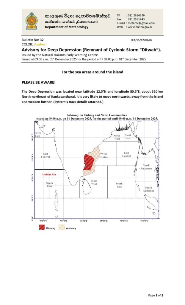 இது தொடர்பாக வளிமண்டலவியல் திணைக்களம் அறிவிப்பொன்றை வெளியிட்டுள்ளது.