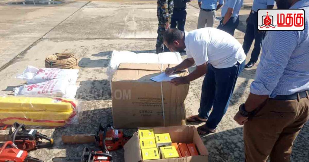 மாவட்ட அரசாங்க அதிபர் ஜே.எஸ்.அருள்ராஜின் வேண்டுகோளுக்கு அமைவாக பாதுகாப்பு அமைச்சினால் மாவட்டத்தின் அவசர அனர்த்த நிலைமைகளை கையாளுவதற்கான உபகரணங்கள் விசேட விமானம் மூலம் மாவட்டத்திற்கு கொண்டு வரப்பட்டன.