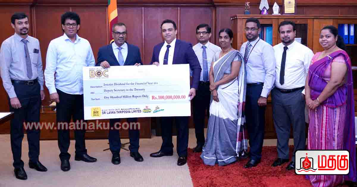 லங்கா திரிபோஷ நிறுவனத்தின் இலாப ஈவாக 100 மில்லியன் ரூபா நிதி திறைசேரிக்கு வழங்கப்பட்டுள்ளது.