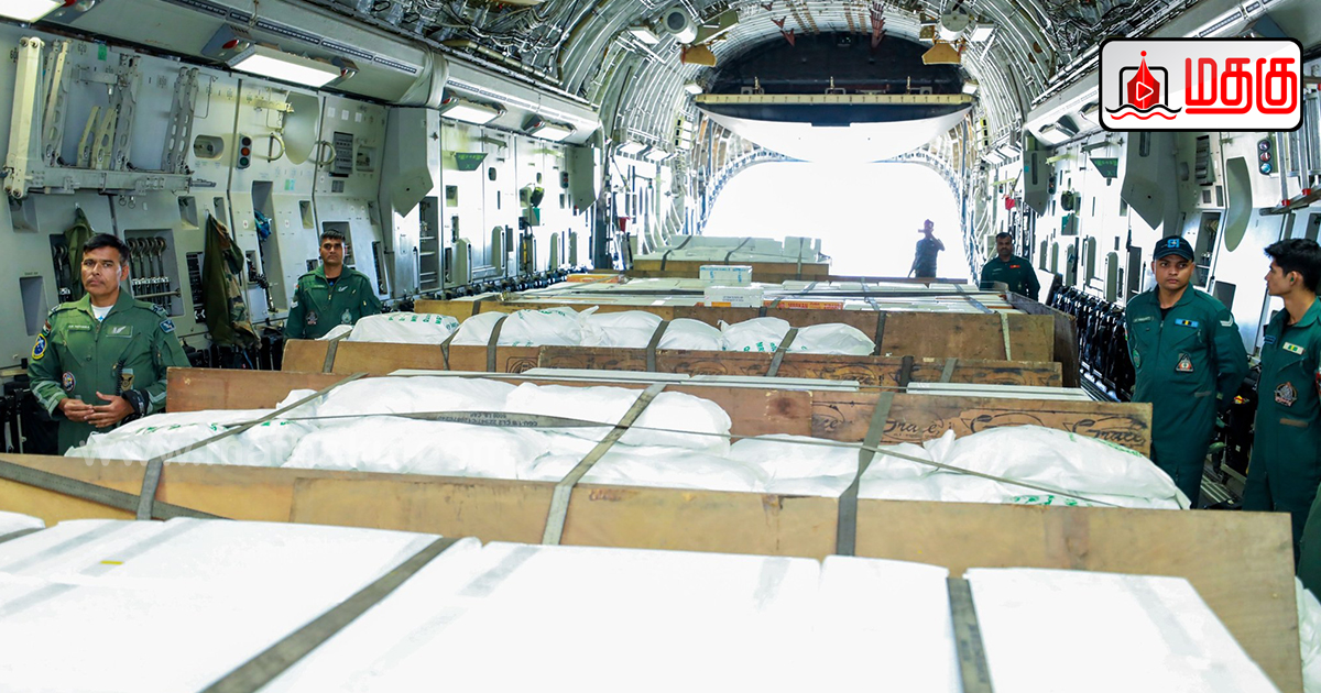 இந்த மருத்துவக் குழுவை இந்தியாவிற்கு அழைத்துச் செல்ல வந்த இந்திய விமானப்படையின் C-17 குளோப்மாஸ்டர் விமானம் மூலம் 10 டொன் மருந்துகள் மற்றும் 15 தொன் உலர் உணவுப் பொருட்கள் அடங்கிய நிவாரணப் பொருட்கள் இலங்கைக்கு கொண்டு வரப்பட்டன. டித்வா சூறாவளியால் பாதிக்கப்பட்ட மக்களின் நிவாரணப் பணிகளுக்கு உதவுவதற்காக இந்த உதவிப் பொருட்கள் இலங்கைக்கு அனுப்பப்பட்டுள்ளன.