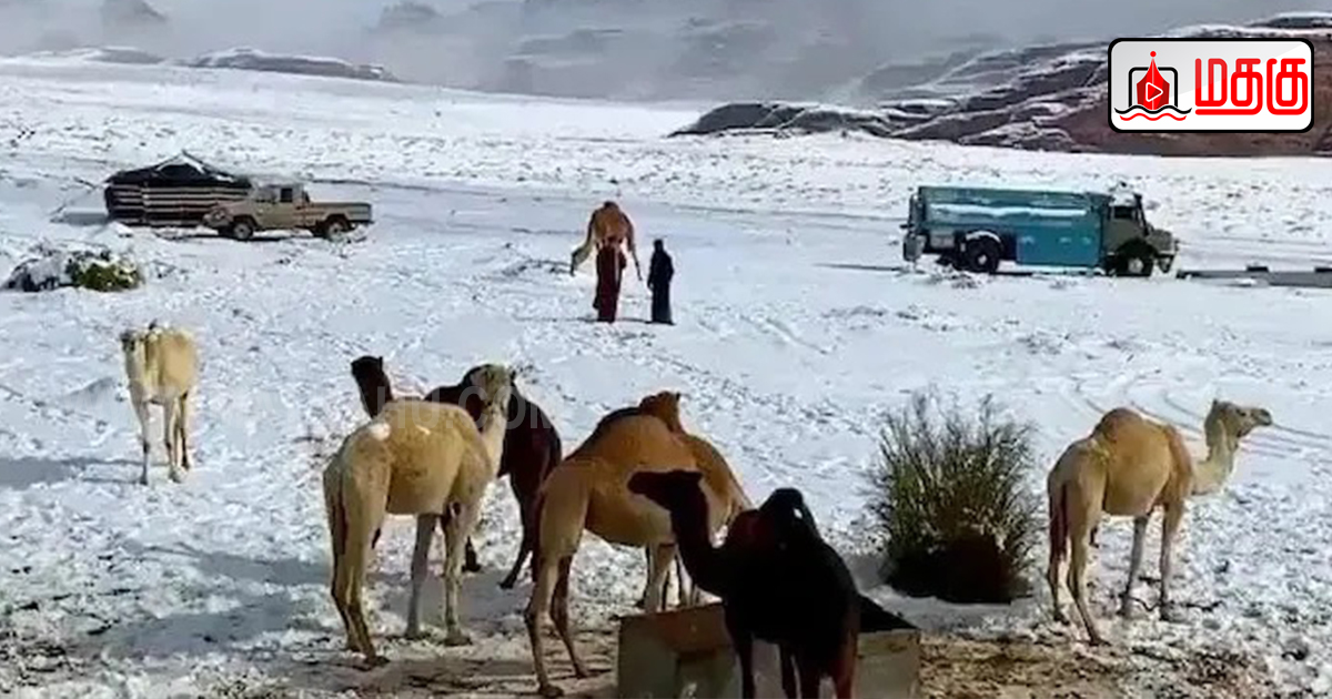 இந்த அசாதாரண பனிப்பொழிவானது சவுதி அரேபியாவின் தபூக் மாகாணத்தில் உள்ள மலைத்தொடர்களின் தோற்றத்தை மாற்றியுள்ளது.