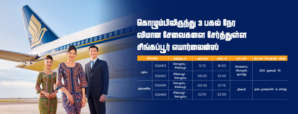 இதன்படி, சிங்கப்பூரின் சாங்கி சர்வதேச விமான நிலையத்திலிருந்து கட்டுநாயக்க பண்டாரநாயக்க சர்வதேச விமான நிலையத்திற்கு ஒவ்வொரு செவ்வாய், வியாழன் மற்றும் ஞாயிற்றுக்கிழமைகளில் புதிய பிற்பகல் சேவை இயக்கப்படவுள்ளது.