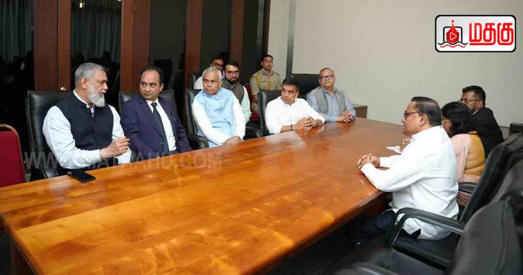 இந்தியாவின் குஜராத் மாநில ஆளுநர் கலாநிதி தேவ்வ்ரத் மற்றும் முதலமைச்சர் பூபேந்திர படேல் உள்ளிட்ட உயர்மட்டத் தூதுக்குழுவினர், பாராளுமன்ற வளாகத்தில் வெளிநாட்டு அலுவல்கள் அமைச்சர் விஜித ஹேரத்தைச் சந்தித்துள்ளனர்.