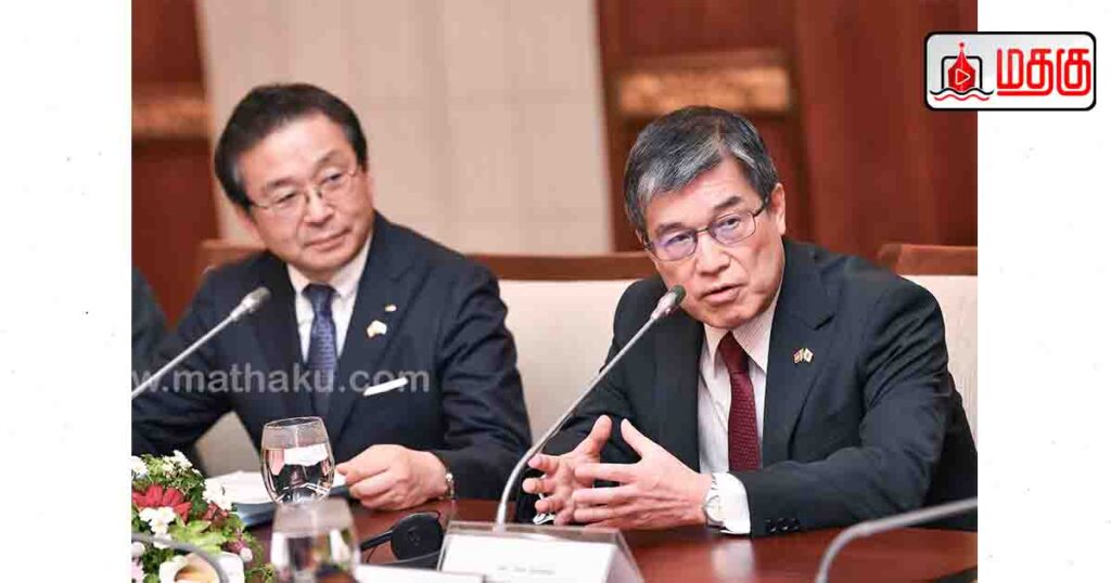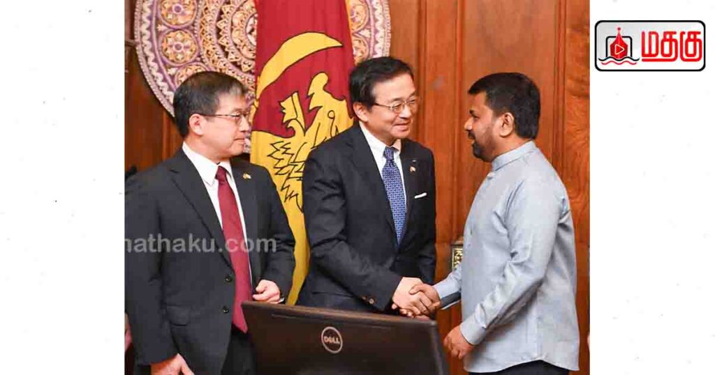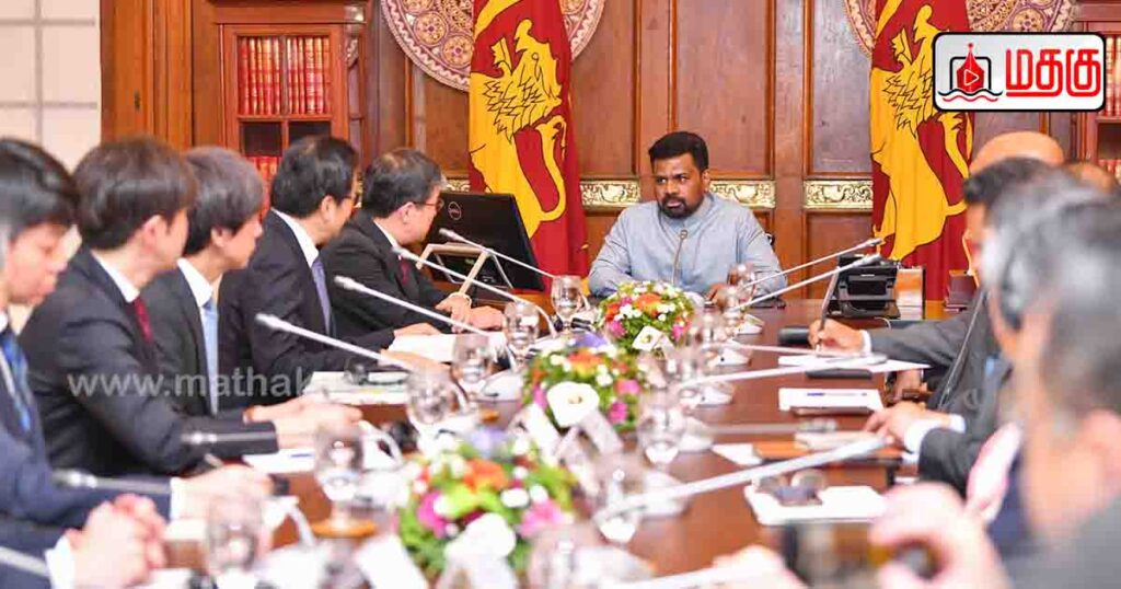 இலங்கை-ஜப்பான் பொருளாதார உறவுகளை புதிய பாதைக்கு எடுத்துச் செல்லும், முன்மொழியப்பட்ட இலங்கை-ஜப்பான் ஏற்றுமதித் தொழில்துறை வழித்தடத்தை (Export-Industrial Corridor) நிறுவுவதற்கான திட்டங்களை செயல்படுத்துவது தொடர்பாகக் கலந்துரையாடுவதற்காக, ஜப்பான் உயர்மட்டக் குழுவினர் 17.02.2026 அன்று ஜனாதிபதி அலுவலகத்தில் ஜனாதிபதி அநுர குமார திசாநாயக்கவைச் சந்தித்தனர்.